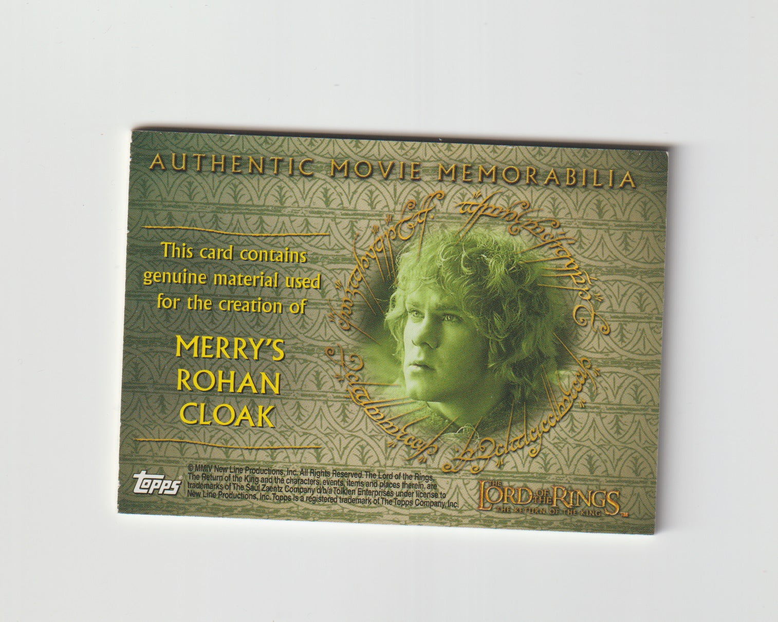 2004 Lord of the Rings Return of the King Update Authentic Movie Memorabilia Merrys Rohan Cloak