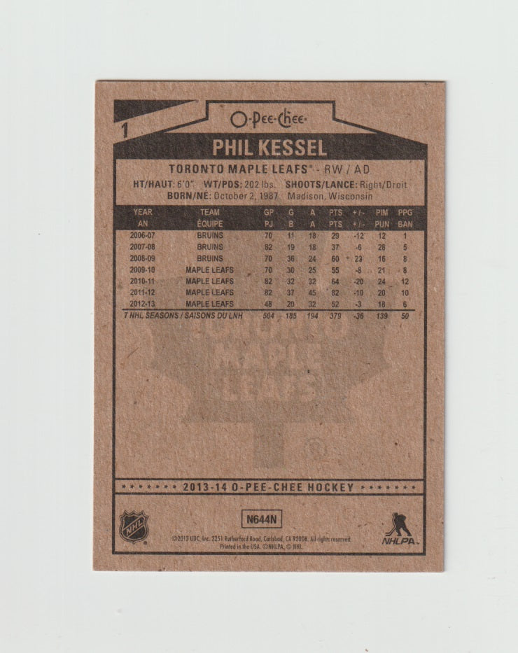 2013-14 O-Pee-Chee Red #1 Phil Kessel
