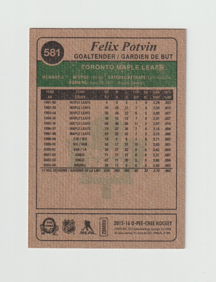 2015-16 O-Pee-Chee Retro #581 Felix Potvin