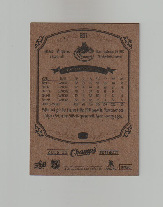 2015-16 Upper Deck Champs Gold Variant Front #207 Henrik Sedin