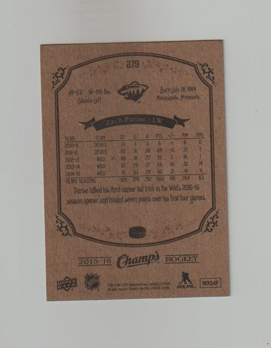 2015-16 Upper Deck Champs Gold Variant Front #279 Zack Parise BP