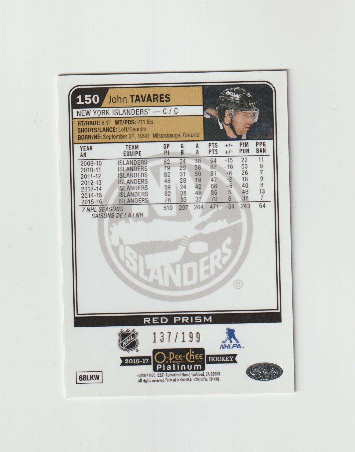 2016-17 O-Pee-Chee Platinum Red Prism #150 John Tavares