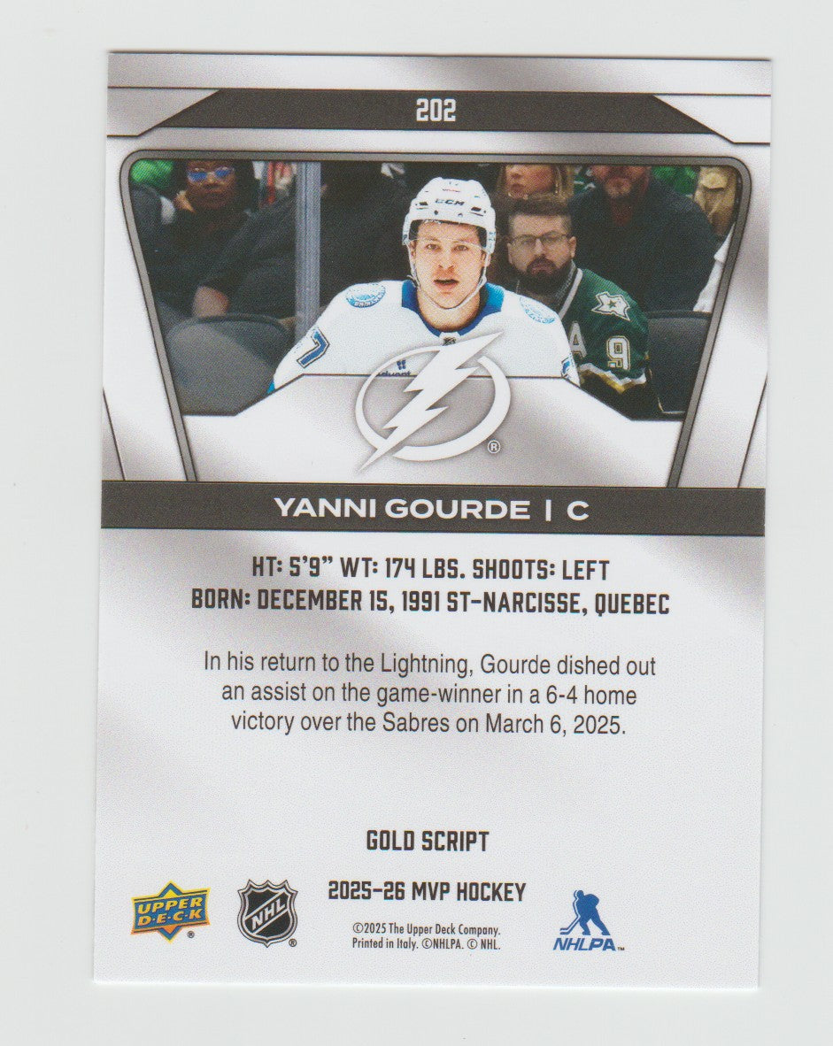 2025-26 Upper Deck MVP Gold Script #202 Yanni Gourde